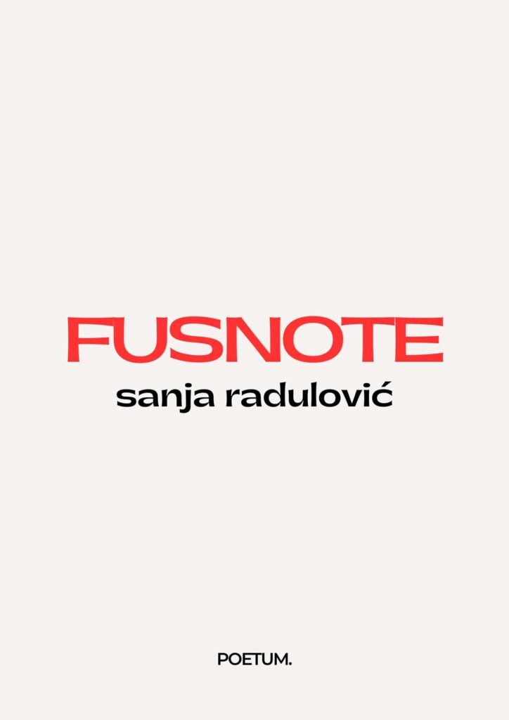 Ovo je zvanično pojašnjenje termina ili riječi fusnota. Na tragu ovog pojašnjenja možemo tražiti i smisao nove knjige Sanje Radulović. Jednostavan i efektan naslov upućuje na zabilješku i pojašnjenje odnosno na referencu prethodno napisanog. Mene je ova knjiga upravo na to podsjetila, na prethodne Sanjine knjige, a priče u ovoj zbirci su čini se neke teme koje se nisu stigle ili mogle uklopiti u njen roman ili prethodne zbirke kratkih priča, a svakako zaslužuju da budu objavljene i čitane.